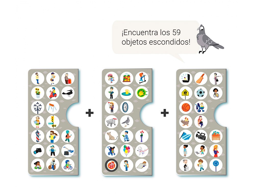 Puzle de observación con temática Ciudad. Incluye 104 piezas de tamaño 5 x5 cm. Tamaño del puzle: 64,5 x 41,5 cm. Contiene un póster de tamaño real para facilitar el montaje y 3 fichas con diferentes objetos. Una vez el p uzle esté montado, los niños deberán encontrar los objetos de las fichas dentro de la imagen del puzle. En este caso, deberán buscar elementos como semáforos, turistas, bicicletas o coches entre las inmensidades de la ciudad. Fácil manejo para los más pequeños: piezas resistentes, seguras y fáciles de manejar. Cartón de 2 mm de grosor. Los puzles ayudan a mejorar y desarrollar multitud de capacidades y habilidades, mejoran la concentración,la observación, la memoria y la resolución de problemas, y desarrollan la la percepción espacial, la psicomotricidad fina, el reconocimiento de for mas, la coordinación mano-ojo y las habilidades matemáticas. Además, los puzles ayudan a mejorar su autoestima y motivación gracias al hecho de termego con éxito. ¡El regalo ideal para l