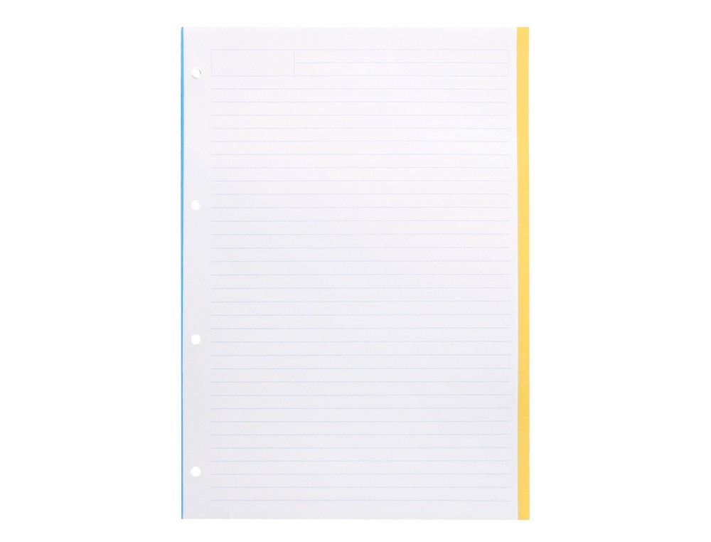 Recambio a4 100 hojas 100g/m2 rayado horizontal 4 taladros bandas de 5 colores antartik