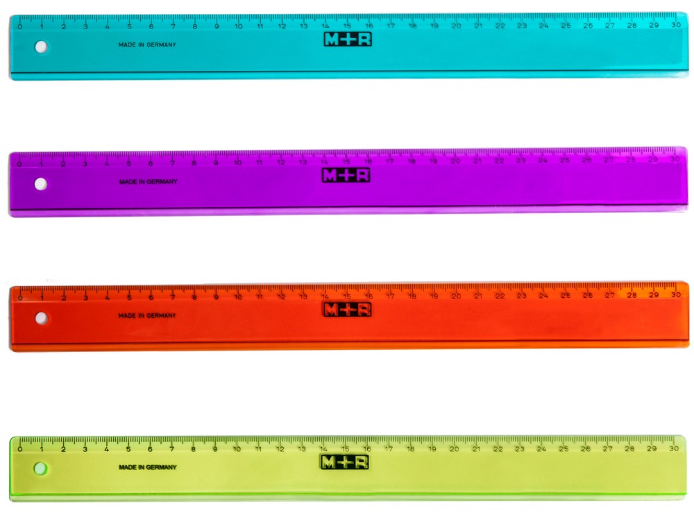 Regla m+r 30 cm plastico graduada y biselada colores surtidos