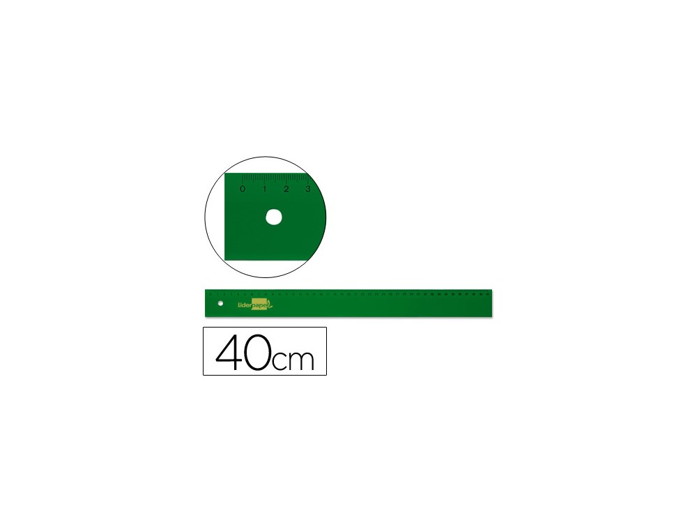 Regla de gran calidad para estudios y oficinas. Fabricada en acrílico verde, con cantos biselados a ambos lados y graduaciones grabadas a prueba de emborronamiento.