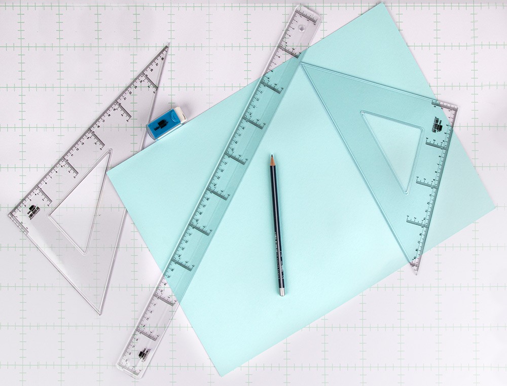 Transparente. Con borde biselado y graduación vertical y horizontal.