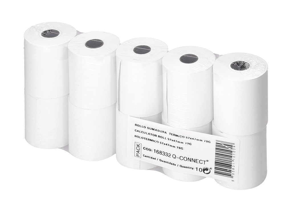 Rollo sumadora termico q-connect 57 mm ancho x 47mm diametro para tpv sin bisfenol a papel de 70 g/m2