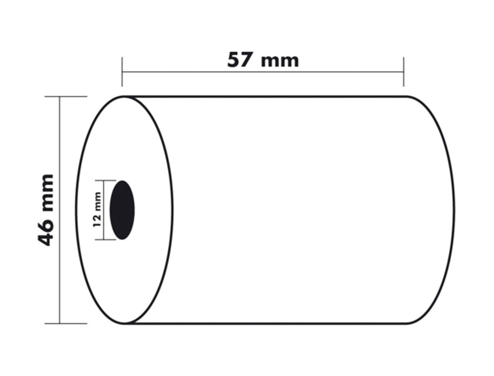 Rollo de sumadora Térmico. 57 mm ancho y diametro 46 mm (24 metros). Certificado FSC. Economico. Para TPV (Terminales de pago Visa). SIN BPA.