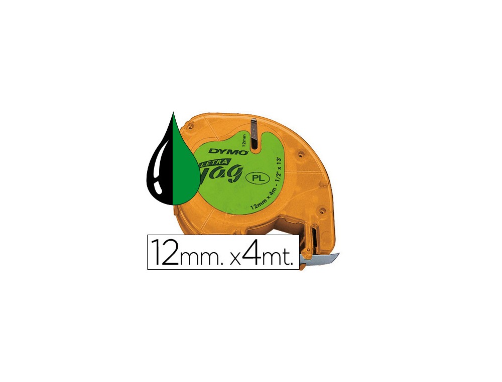 Cinta dymo 12mmx4mt -negro/verde acido para maquina letratag