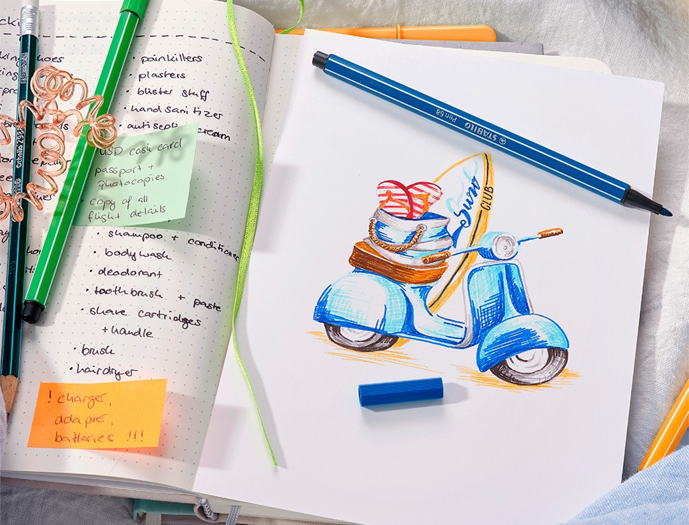 Rotulador con intensos colores. Punta redonda de fibra muy resistente. Colores brillantes. Se puede usar para escribir o colorear. Tinta con base de agua casi inodora. Trazo de 1 mm.