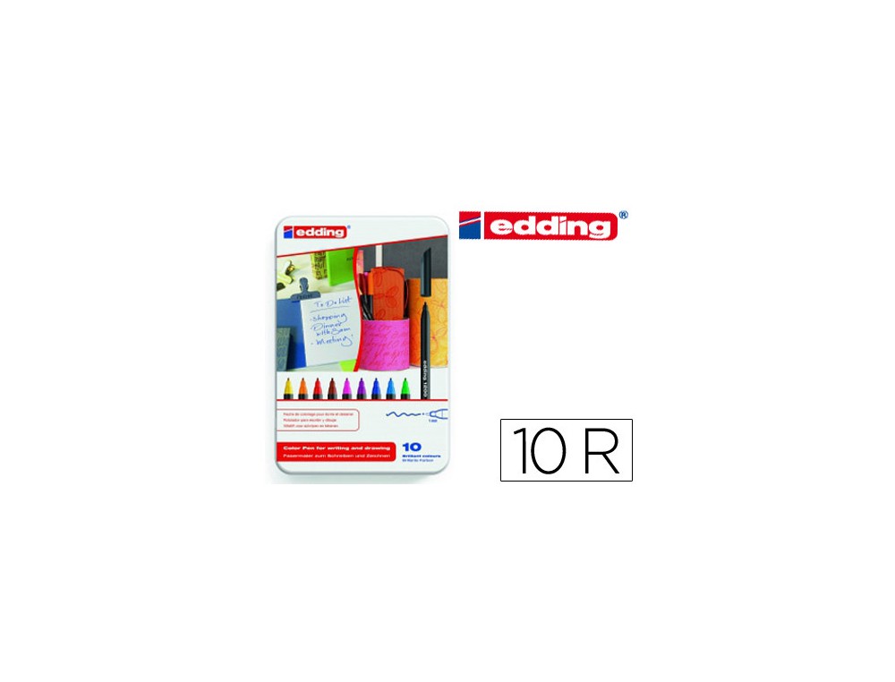 Rotulador edding punta fibra 1200 caja metalica 10 unidades colores surtidos punta redonda 0,5 mm