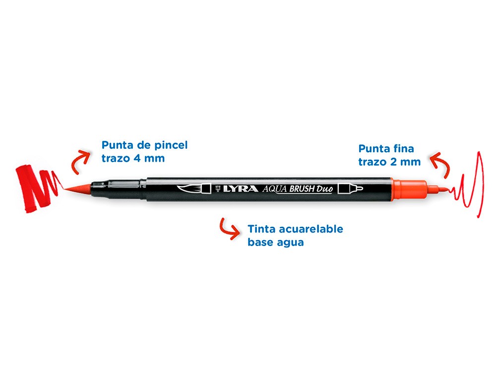 Rotulador lyra aqua brush acuarelable doble punta y pincel tonos primarios blister de 6 unidades