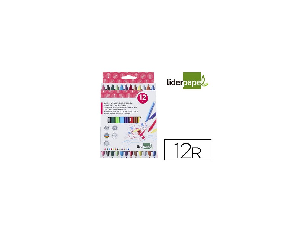 Rotulador liderpapel duo doble punta fina y gruesa caja de 12 unidades colores surtidos