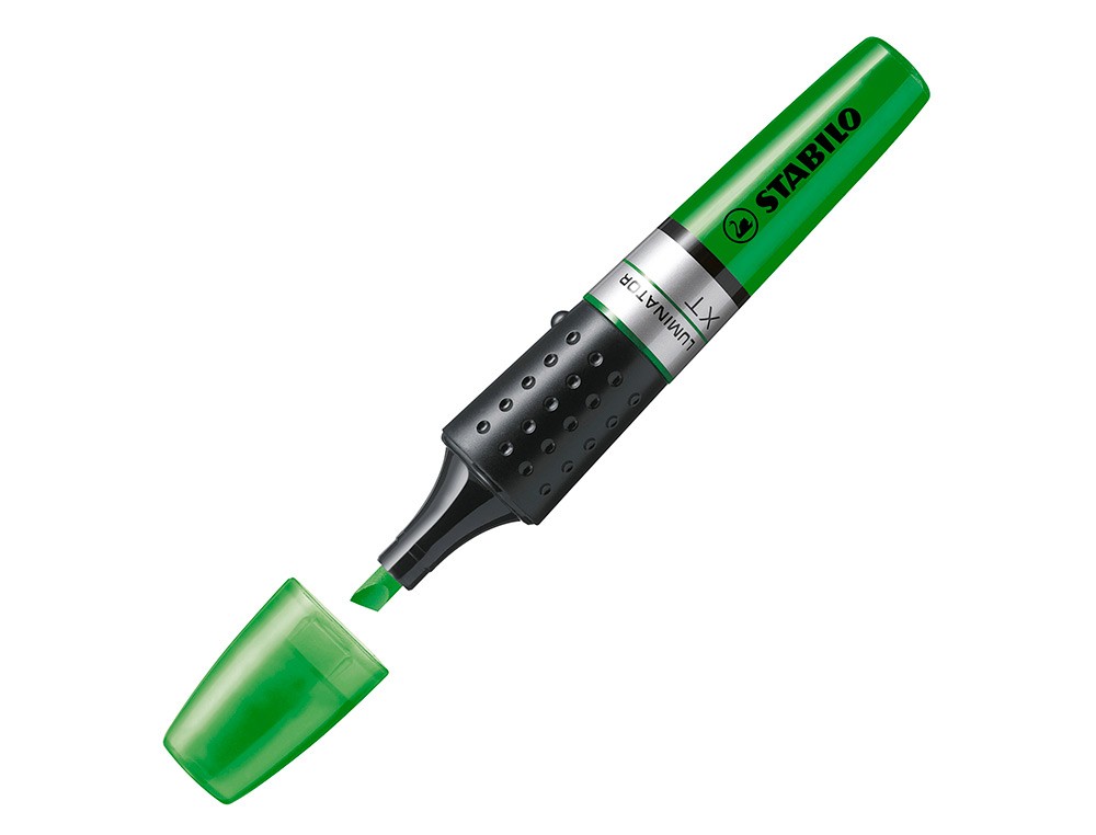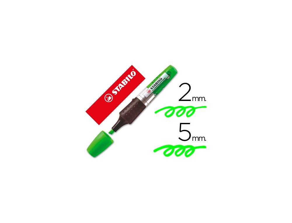 Marcador fluorescente con un sistema de tinta líquida sumamente funcional que permite un control del nivel de la tinta en cualquier circunstancia. Tinta a base de agua. Punta biselada. Trazo de 2 a 5 mm.