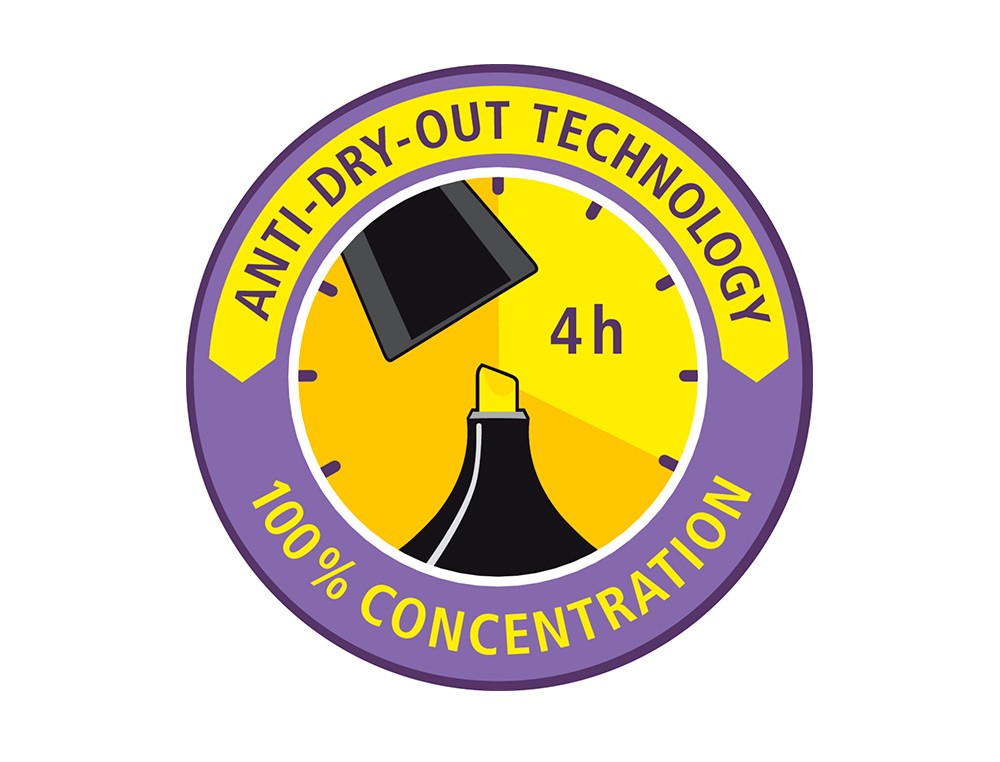 Rotulador fluorescente antisecado, hasta 4 horas destapado sin secarse para poder concentrarse en el trabajo. Resistente a la luz en todo tipo de papel normal, térmico y fotocopias. Punta biselada. Trazo de 2 a 5 mm.