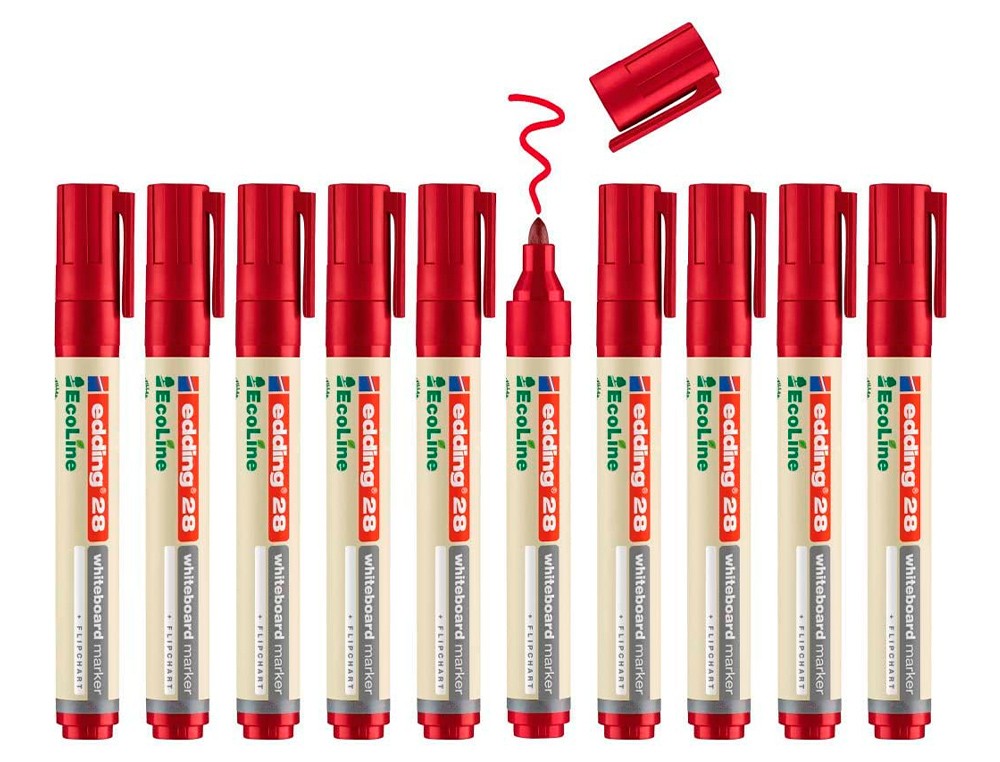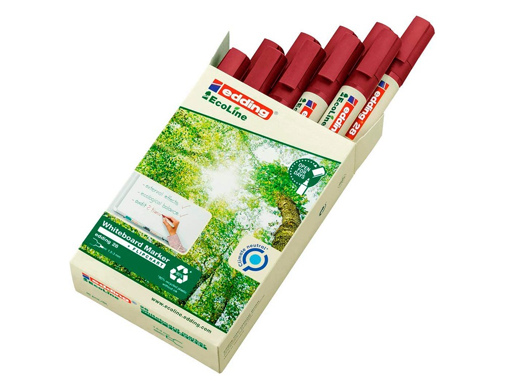 Rotulador edding 28 para pizarra blanca ecoline 90% reciclado color rojo punta redonda 1,5-3 mm recargable
