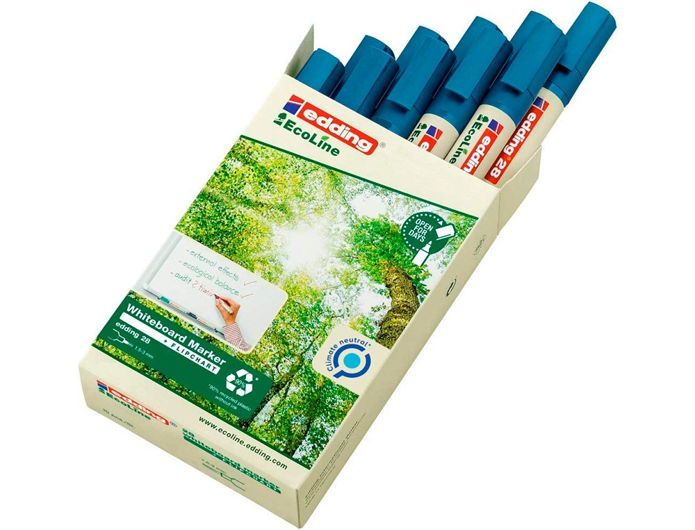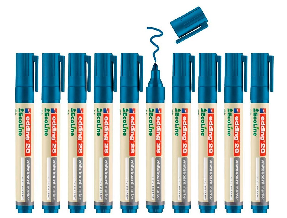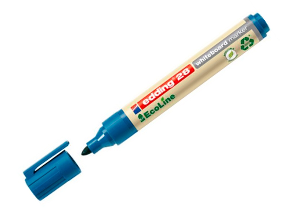 Rotulador edding 28 para pizarra blanca ecoline 90% reciclado color azul punta redonda 1,5-3 mm recargable