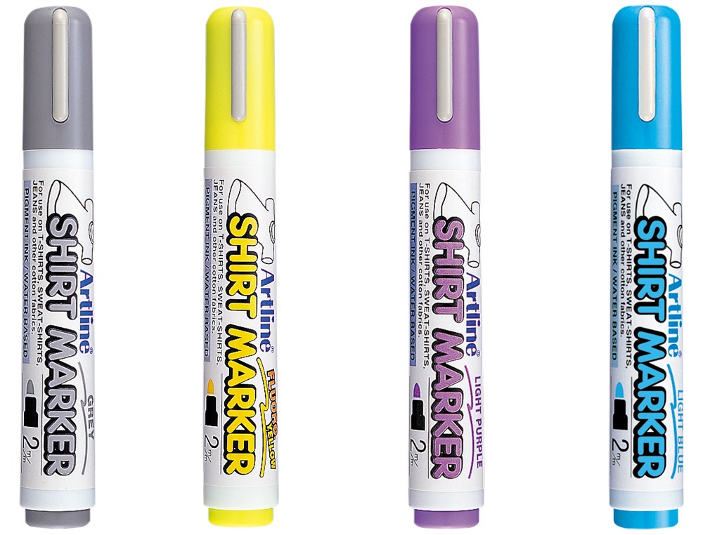 Rotulador artline camiseta ekt-2 amarillo gris celeste y violeta punta redonda 2 mm usoen camiseta caja de 4 unidades
