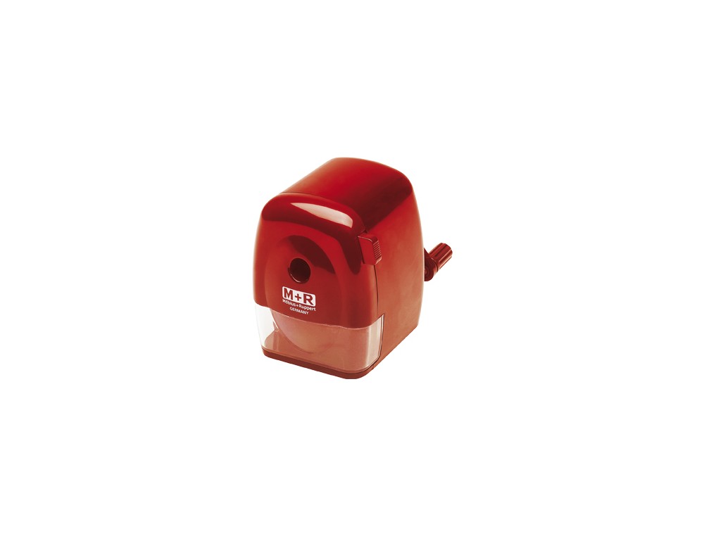 Sacapuntas metálico y cobertura de plástico. De sobremesa, incluye agarre para su sujeción. Manual con manivela y abrazadera que evita la rotura del lápiz. Función de parada automática cuando la punta está suficientemente afilada. Permite selección del diámetro del lápiz. Disponible en color negro y en color rojo. Un uso. Medidas: 71 x 110 x 95 mm.