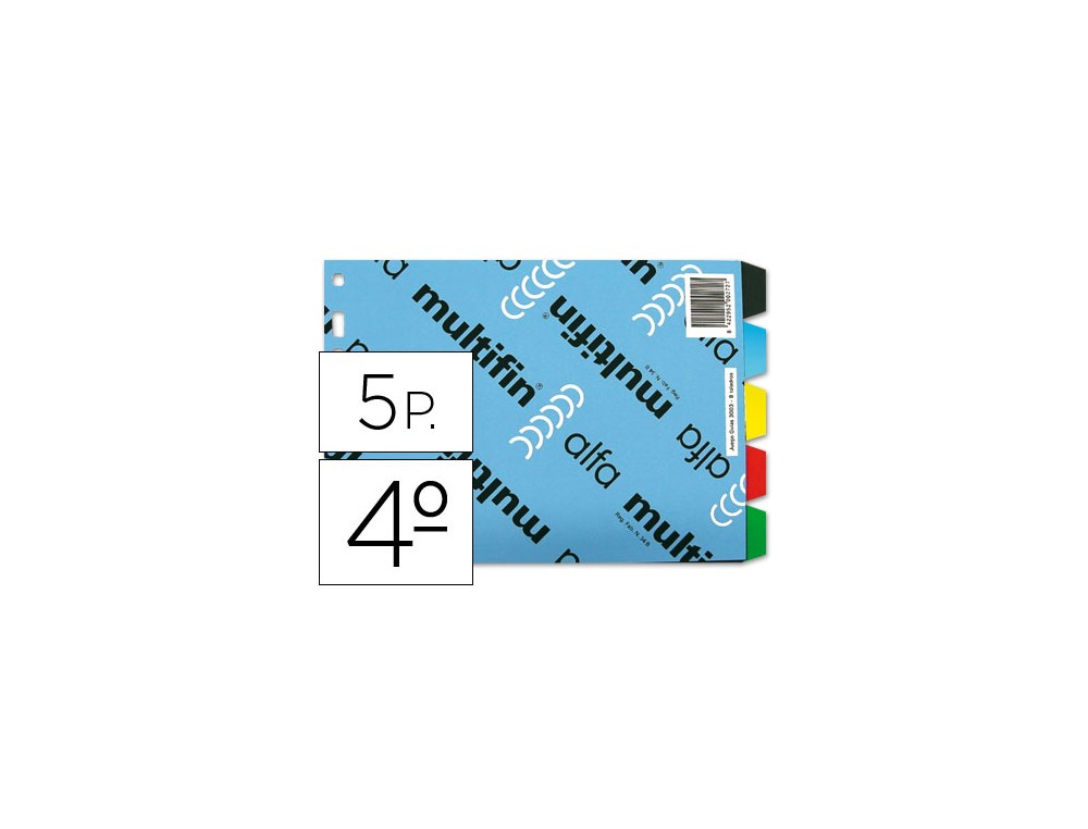 Juego de 5 separadores. Fabricados en PVC de 100 micras. Indispensable para una rápida consulta e identificación de los documentos. 8 taladros. 4º apaisado.