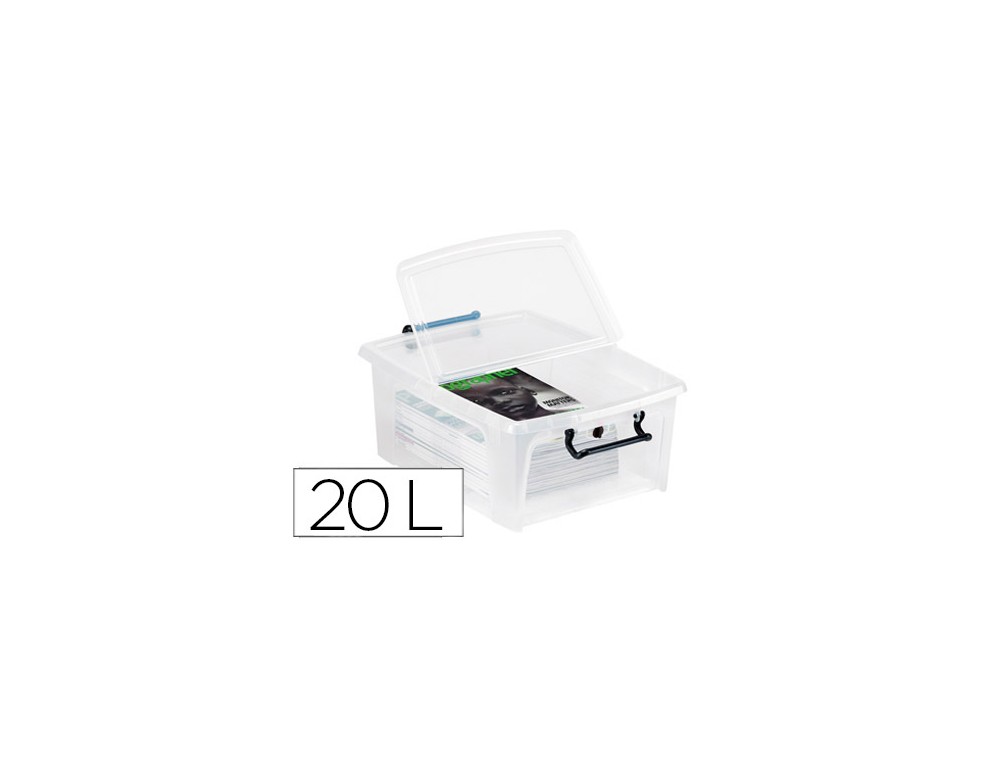 Contenedor plastico cep 20 litros 190x460x170 mm transparente con tapa y cierre hermetico
