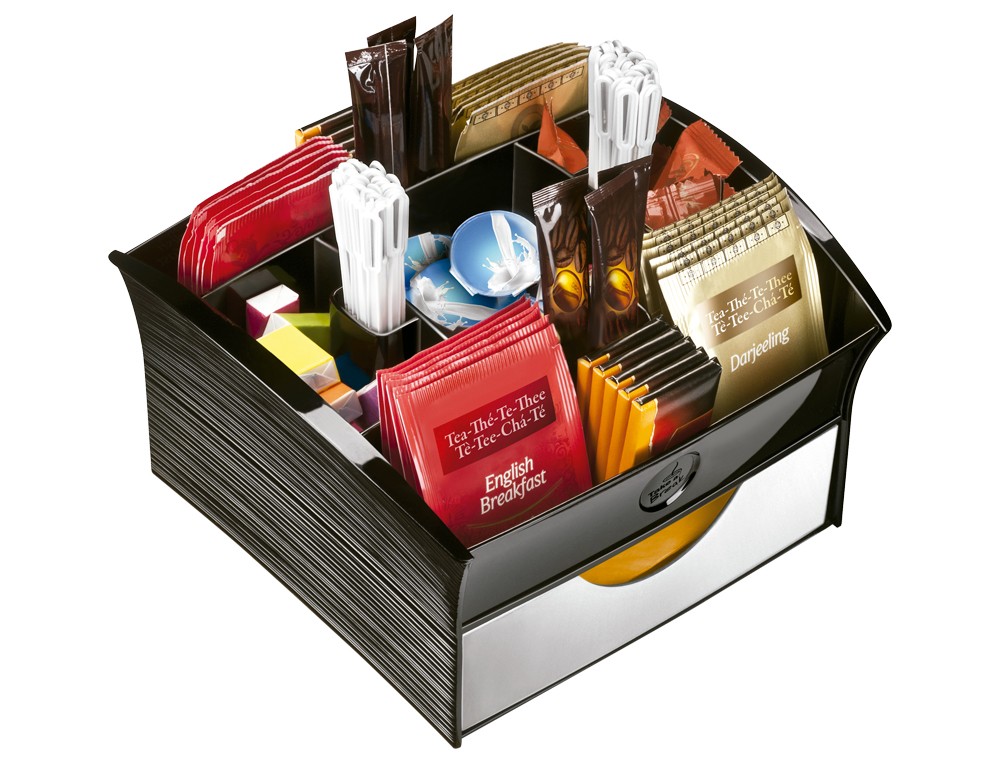 Compacto, accesible y cómodo, este módulo encontrará fácilmente su sitio en el \"espacio cocina\", junto a la cafetera o caldera. Monodosis de café, de leche, bolsitas de té, palitos, azúcar, toallitas de papel Nunca se encontraron tan bien ordenandos y accesibeles para facilitarle la preparación de sus bebidas calientes. Los tiradores en media luna facilitan la apertura de los cajones. Con sistema antivuelco, los cajones pueden por lo tanto sacarse del módulo. Las múltiples combinaciones posibles permiten concebir el módulo ideal para satisfacer sus necesidades. Lleva patines antideslizamiento incluidos.