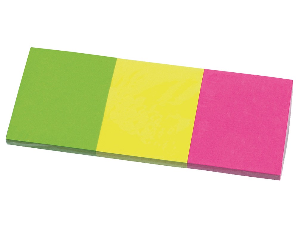 Recomendables para escribir datos. Colores fluorescentes. Medidas: 38 x 51 mm. El pack de 3 blocs de 50 hojas por color.