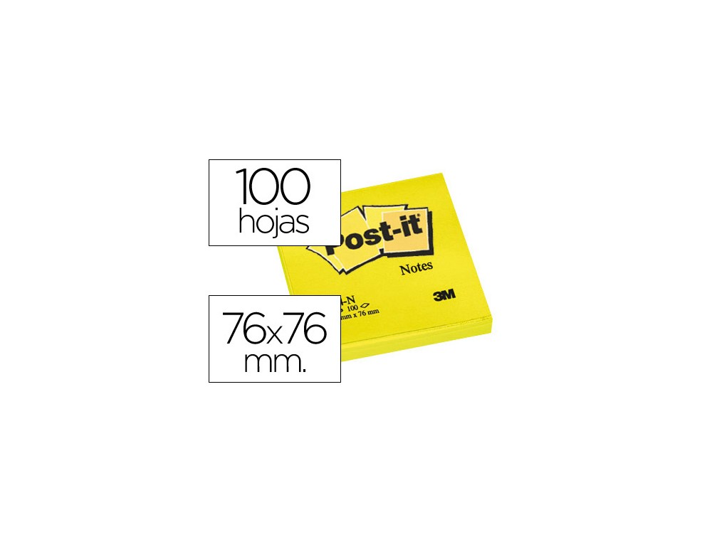 Bloc de notas adhesivas quita y pon post-it 76x76 mm amarillo neon con 100 hojas