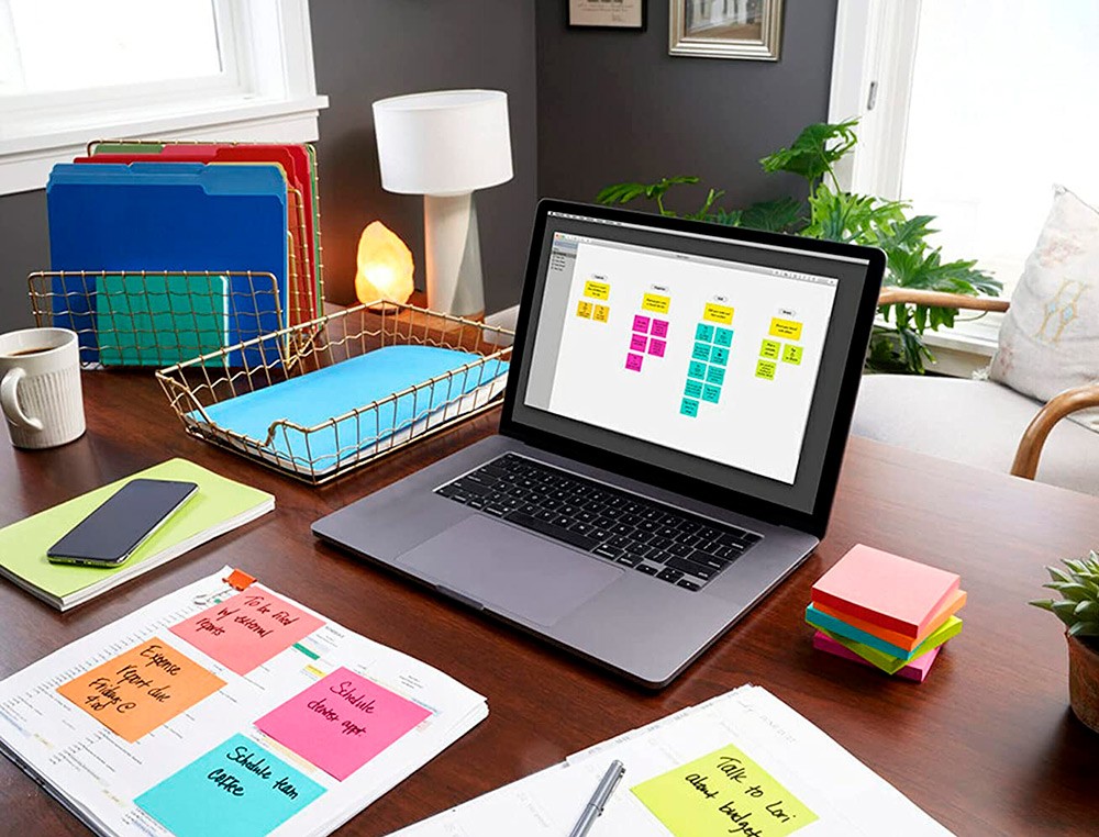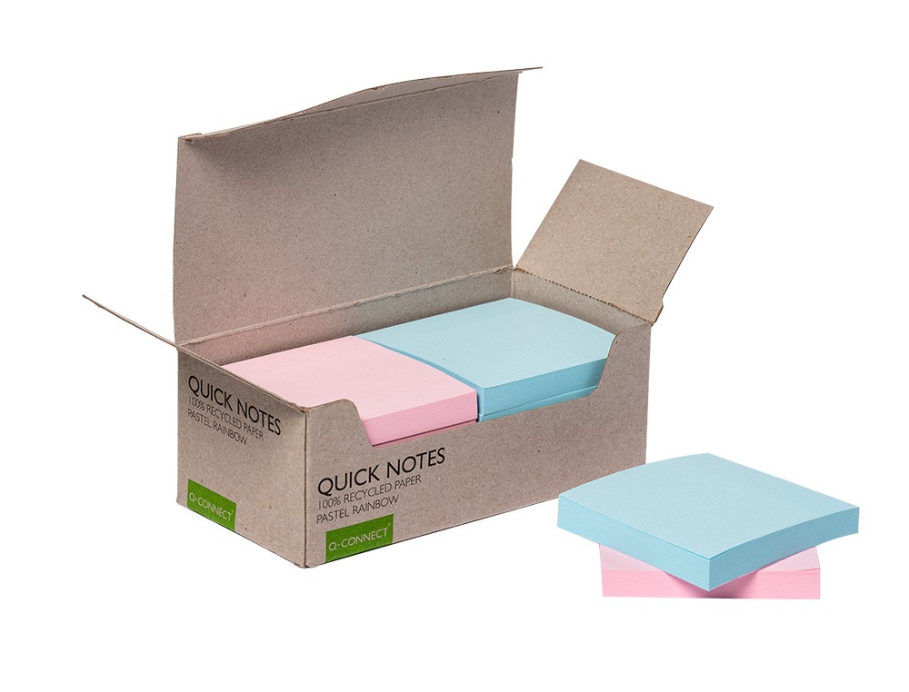 Bloc de notas adhesivas quita y pon q-connect 76x76 mm 100% papel reciclado colores pasteles en caja de carton