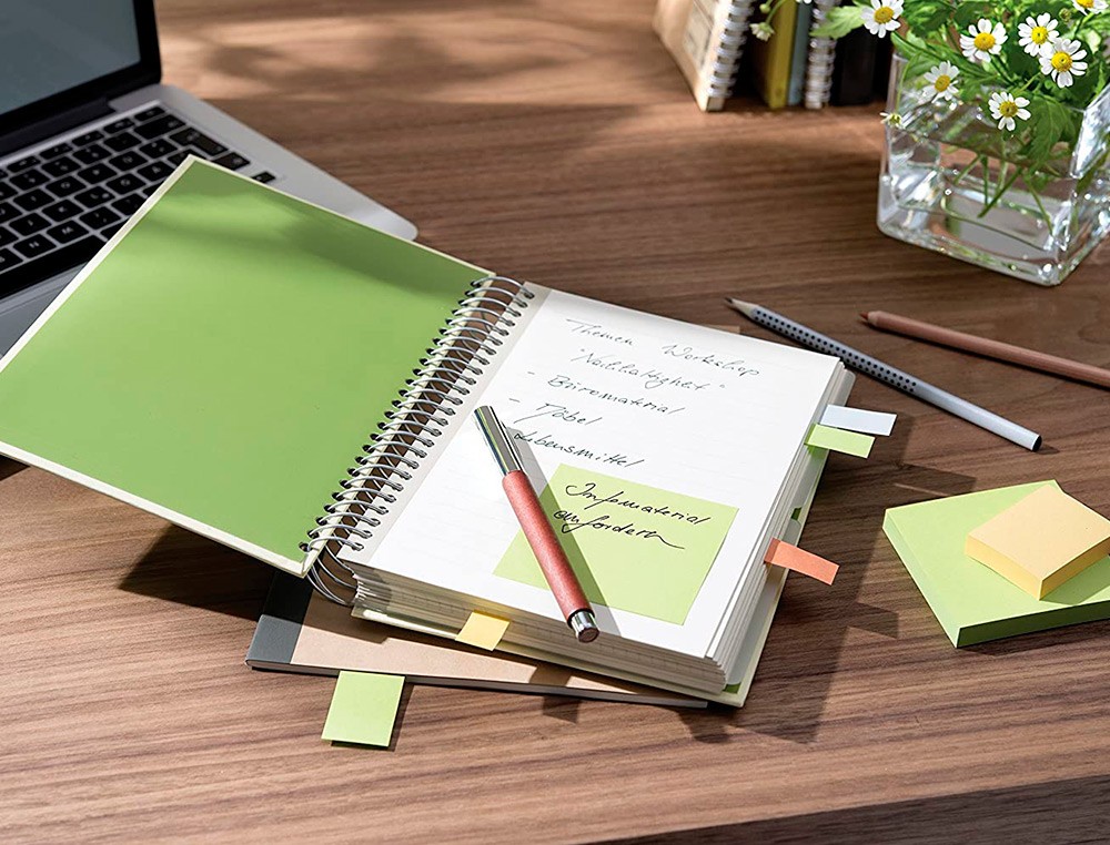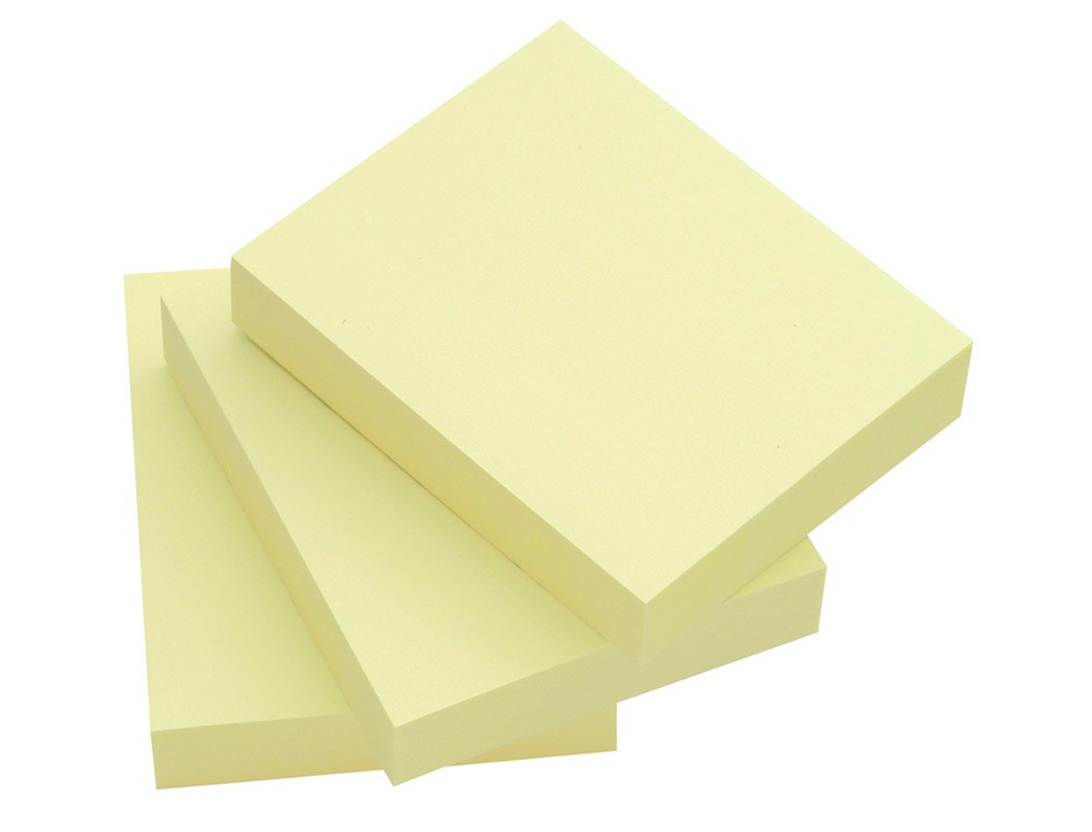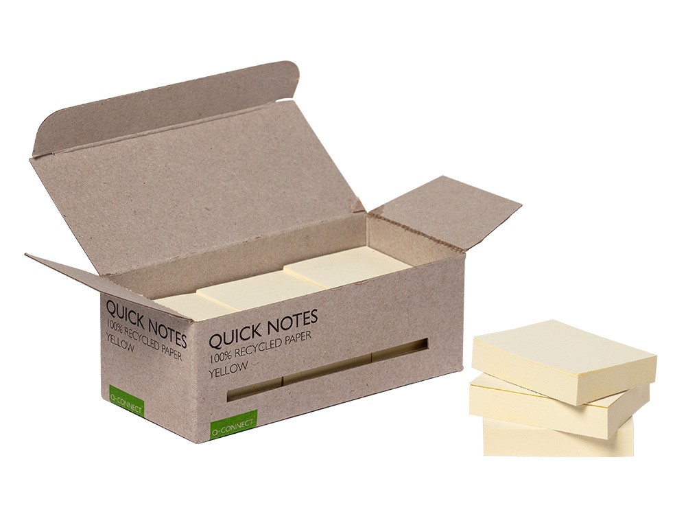 Bloc de notas adhesivas quita y pon q-connect 38x51 mm 100% papel reciclado amarillo en caja de carton
