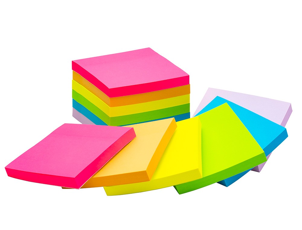 Muy útiles para recordar información. Colores pastel y fluorescentes surtidos : naranja pastel, lila, rosa fluor, naranja fluor, azul fluor y verde fluor. Papel con certificacion FSC. Medidas: 76 x 76 mm. Bloc de 100 notas.