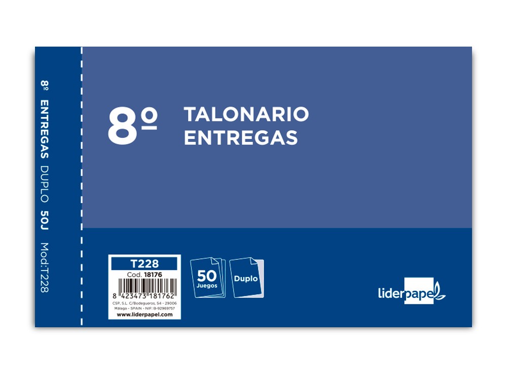 Talonario liderpapel entregas 8º original y copia t228 apaisado