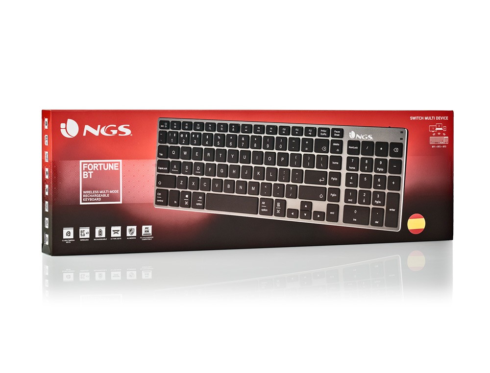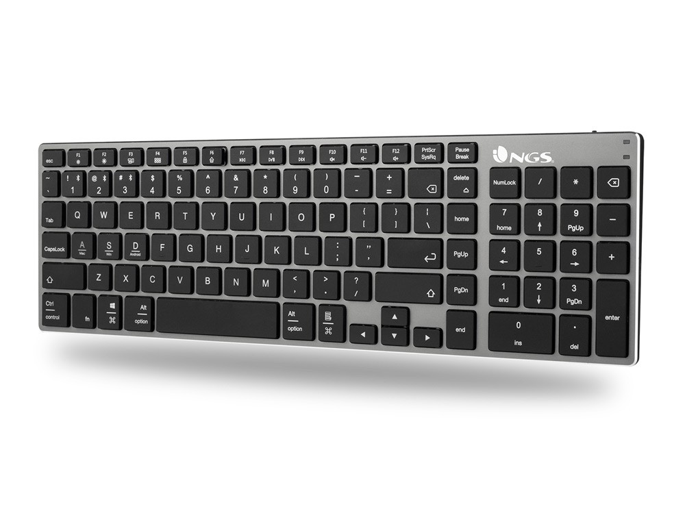 Teclado ngs fortune multimode inalambrico 12 teclas multimedia color aluminio 364x116x14 mm