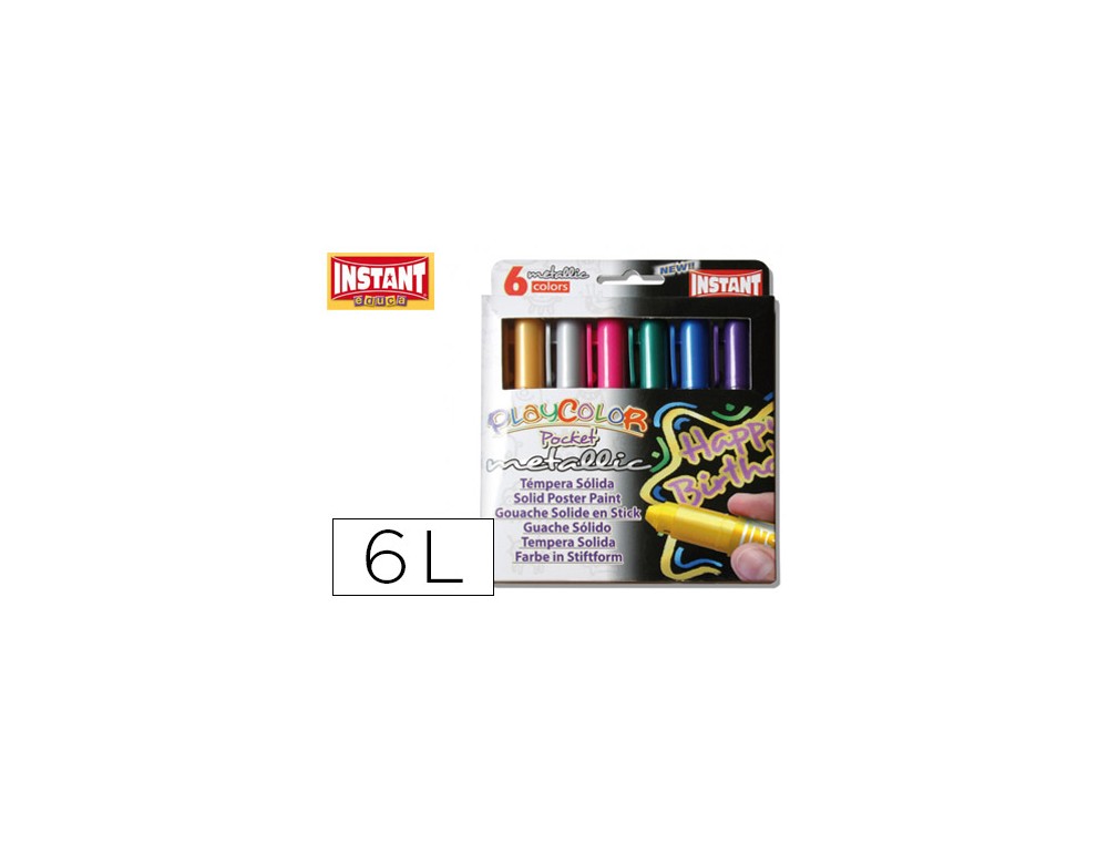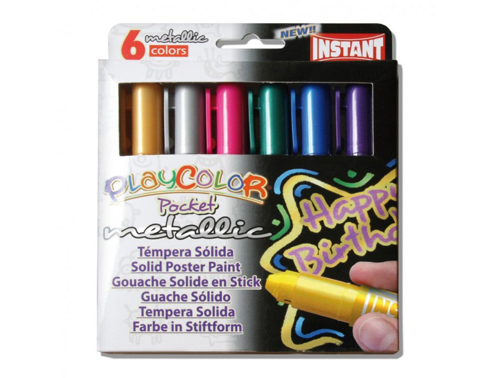 Tempera solida en barra playcolor pocket escolar caja de 6 colores metalizados