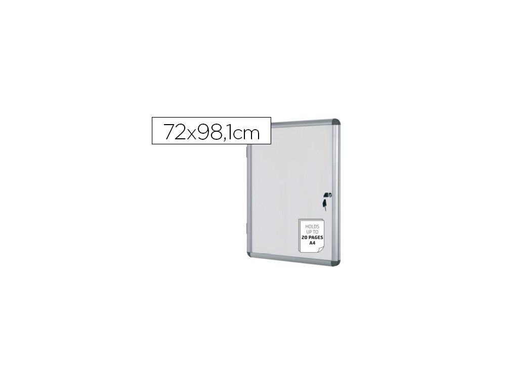 Vitrina de anuncios acristalada con marco de aluminio y superficie magnética de acero lacado en blanco. Cristal acrílico de alta transparencia que aporta gran visibilidad. Cantoneras redondeadas. Para utilizar con imanes y con rotuladores de borrado en seco. Incluye kit de fijación fácil. Cerradura con 2 llaves incluidas. Muy resistente, segura y ligera, con 3,5 cm de espesor.