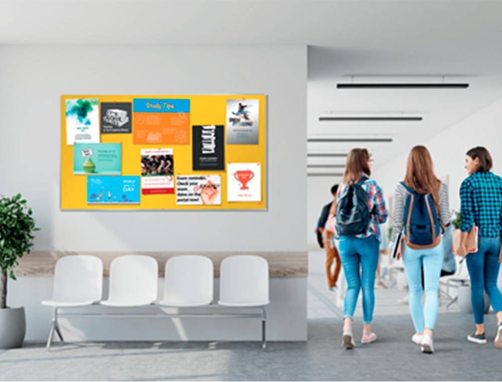 Tablero de anuncios de fieltro de formato panorámico con un marco contemporáneo fino y discreto que ofrece una superficie de visualización más accesible y extensa. El sistema InvisaMount facilita la instalación y los soportes de sujeción están cuidadosamente ocultos tras el tablero. Tablero de anuncios con una excelente superficie de fieltro para fijar y mostrar tus avisos. Medidas: 710x400mm.