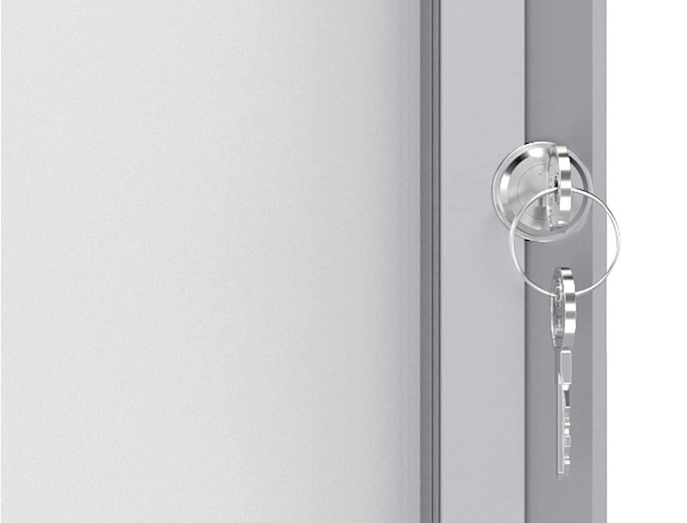 Vitrina con cerradura para interiores con superficie blanca magnética de borrado en seco y puerta de seguridad de cristal de 4 mm de grosor. Ideal para mostrar los documentos con seguridad. Optimizada para diversas hojas formato DIN A4. Bisagras laterales. Se suministra con los anclajes a la pared y dos llaves. Medidas 9 × A4. Medidas externas: 1000×752×37 mm.